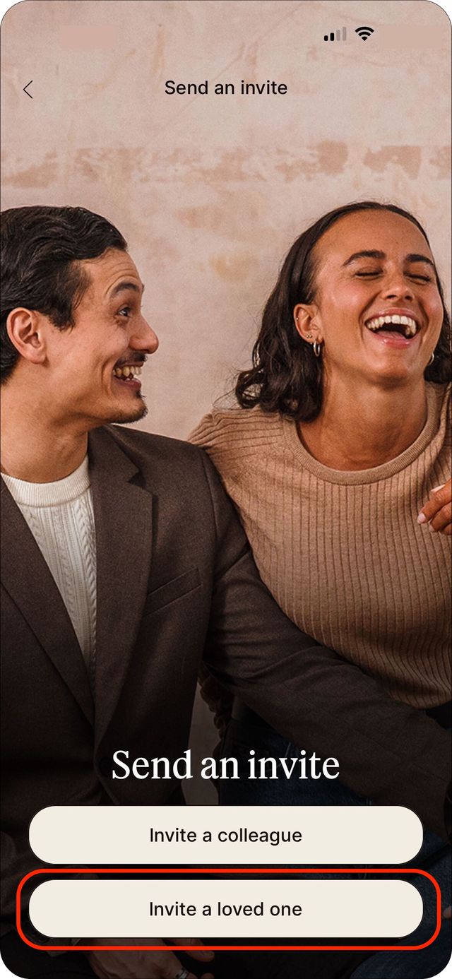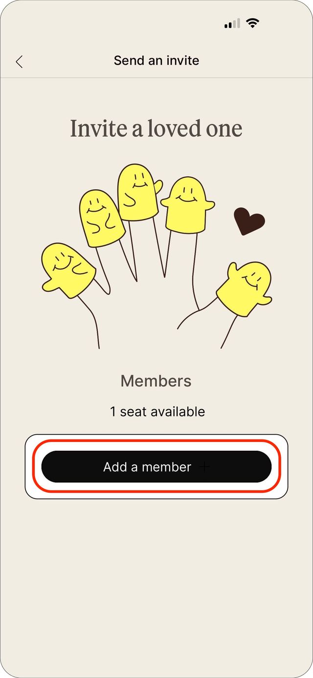 - You will be presented with two invite options. Select Invite a loved one. Then, select Add a member.