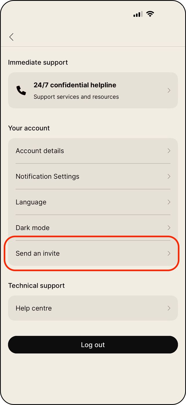The user can invite up to 5 friends or family members to have free access to Unmind. The 'Invite a Loved One' feature allows you to invite a friend or family member to get free, confidential access to Unmind and can be accessed on the mobile app by going to Account > Send and invite > Invite a loved one