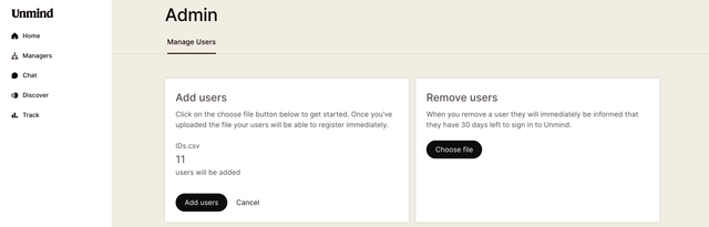 This guide will walk you through how to manage access to the Unmind platform for employees joining or leaving your organisation, using our Manage Users function.